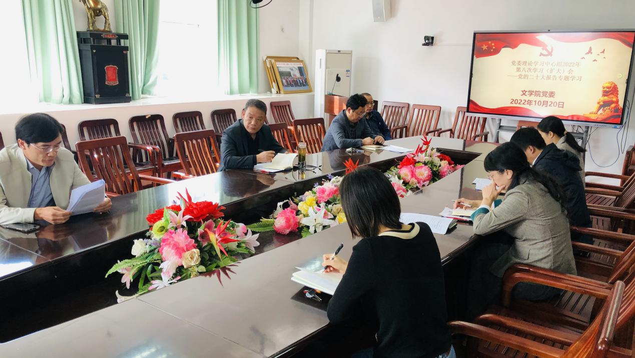 2022年10月20日上午,yl8cc永利线路检测中心党委理论学习中心组召开2022年第八次学习(扩大)会,专题学习党的二十大报告。会议由院党委书记严志谷主持,院党委委员及各教工、学生党支部委员参加了会议,并依次谈了自己的学习心得体会。