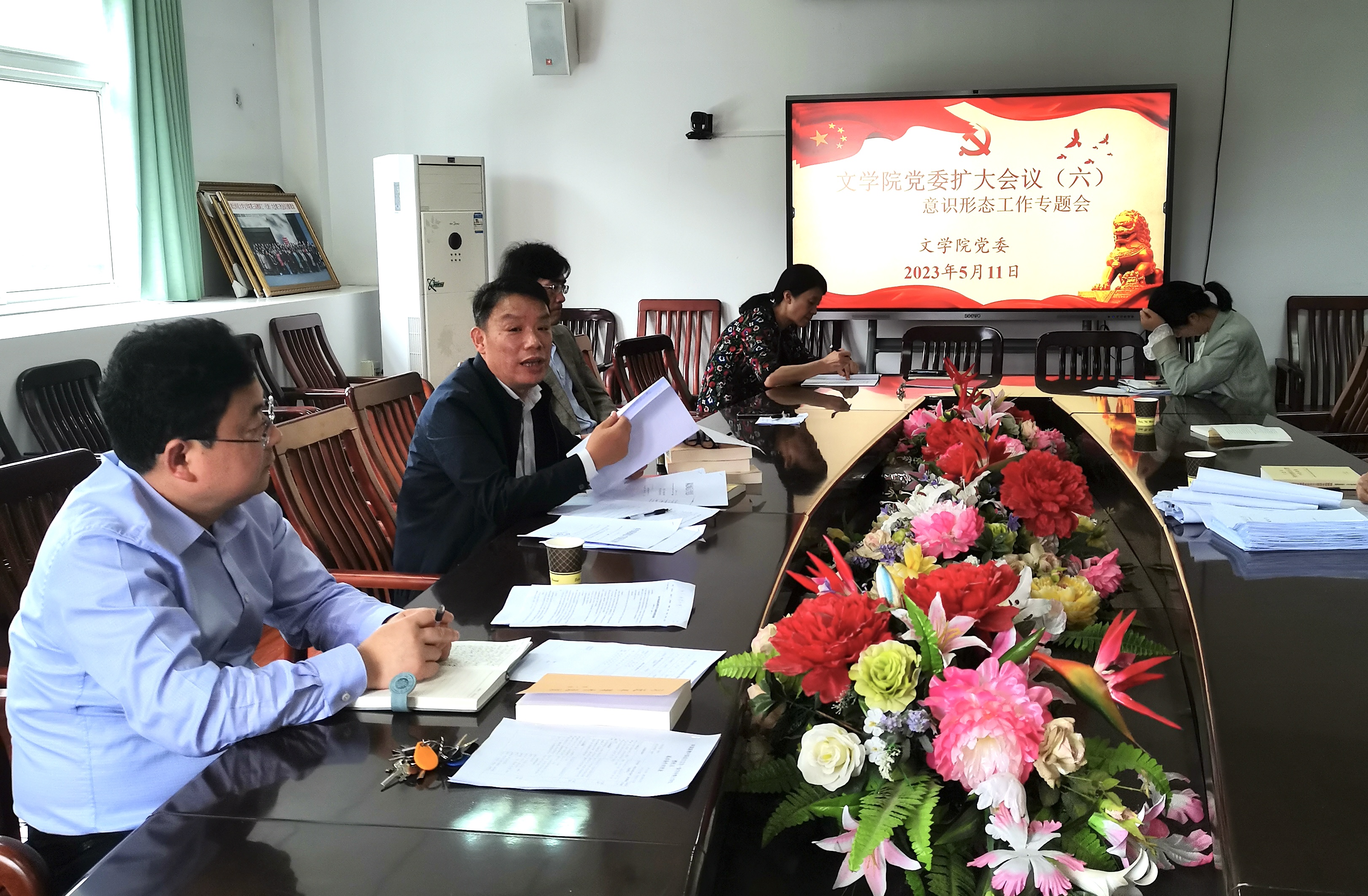 2023年5月11日.上午,yl8cc永利线路检测中心党委于人文楼A-505会议室召开意识形态工作专题会,研究、部署相关工作。学院党委委员、班子成员、师生支部书记、教师支委参加会议。