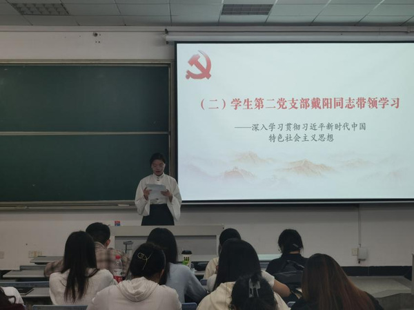 学生第一党支部胡金怡同志领学“习近平新时代中国特色社会主义思想”。她提到,要自觉地学习党章、遵守党章,同时要认真总结党史学习教育的成功经验,坚持用习近平新时代中国特色社会主义思想指导实践,不断巩固拓展党史学习教育成果,满腔热情为群众办实事、解难事,走好新时代党的群众路线。二支部戴阳同志在领学“习近平新时代中国特色社会主义思想”时提到,要深化党建引领基层治理,以推动党群服务阵地为民服务与基层治理双向赋能为重要抓手,组织好社会力量,走出一条符合超大城市特点和规律的基层治理新路。三支部潘凤同志领学“大力推进干部纪律教育”,她认为,持续深化党员干部“一下三民”主题实践活动,是当前党员干部必须认真对待的一项重要任务。作为一名党员干部,要积极主动发挥自我使用价值,以务实的工作作风下基层,要扑下身子深入师生一线察民情,为社会和教育事业发展贡献自己的力量!