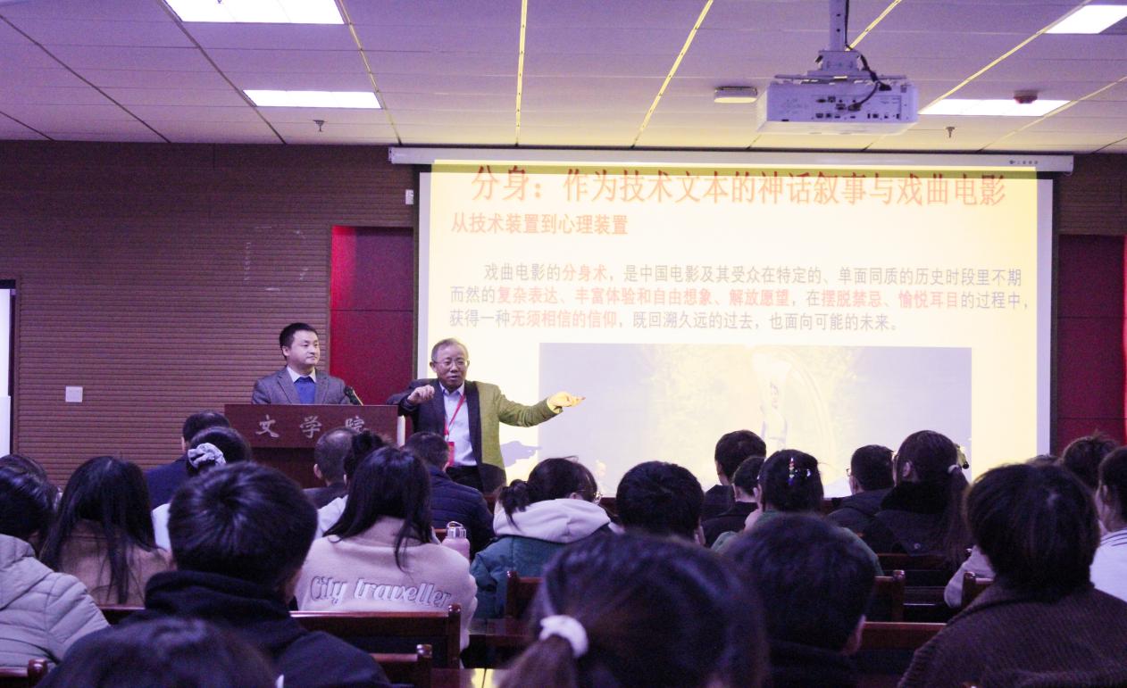 为庆祝湖北师范大学建校五十周年,yl8cc永利线路检测中心推出校庆学术系列报告。2023年11月17日下午,yl8cc永利线路检测中心校友、北京大学李道新教授作客我校50周年校庆系列学术报告会,为yl8cc永利线路检测中心师生作题为“分身:作为技术文本的神话叙事与戏曲电影”的专题学术报告。此次学术讲座在人文楼A座602报告厅展开,yl8cc永利线路检测中心特邀嘉宾、yl8cc永利线路检测中心班子成员、教师、研究生以及部分本科生参加本次讲座。讲座由副院长王成博士主持。