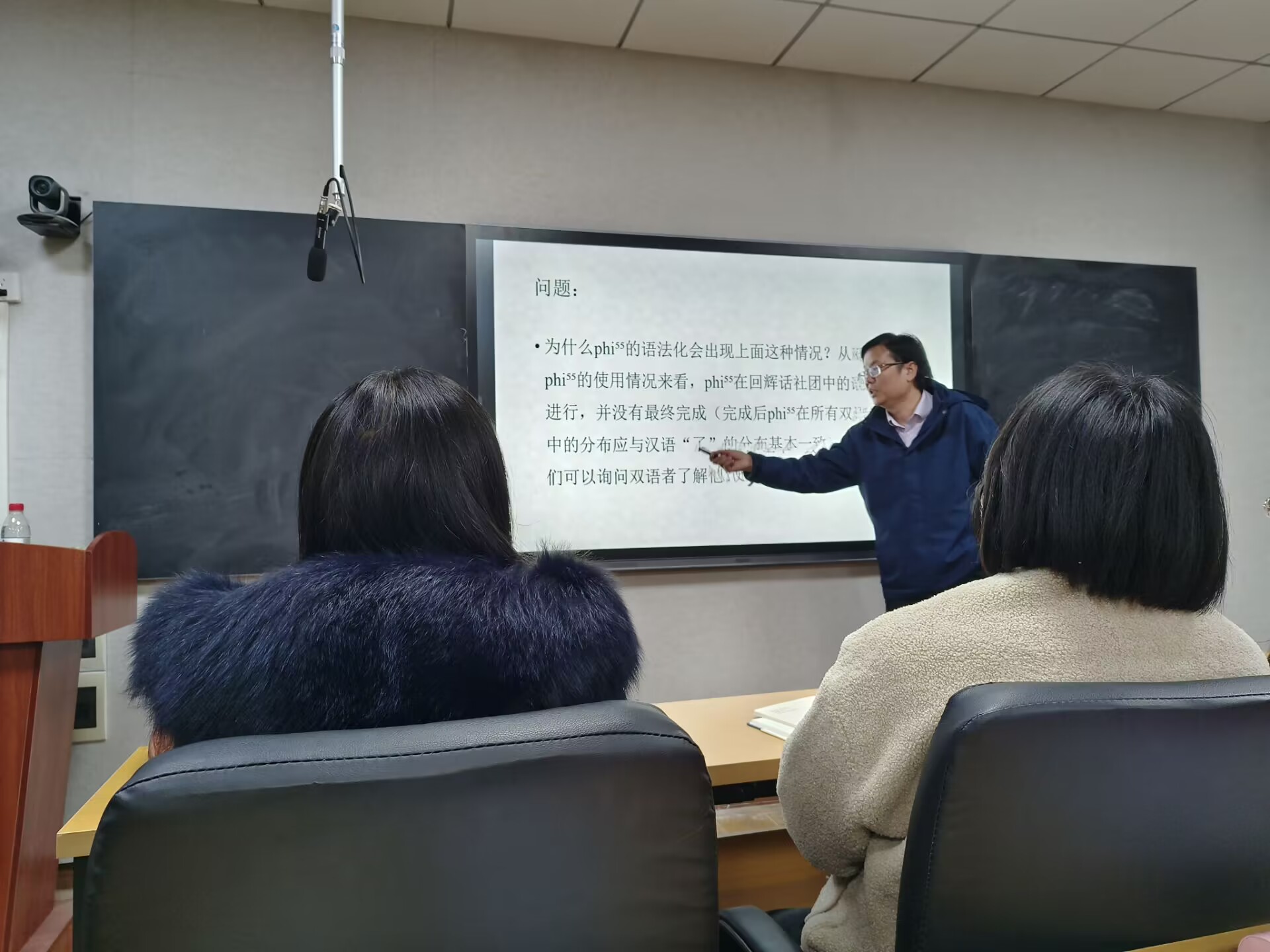 在报告过程中,田祥胜博士主要介绍了语法化与语法化区域整体的概况、接触引发语法化机制、普通接触引发语法化与复制语法化的本质、结论与思考等几个方面的内容。首先,田祥胜博士以介词“把”的形成过程为例,介绍了什么是语法化以及语法化发展的几个阶段,解释了语法化区域。然后,田祥胜博士重点介绍了接触引发语法化的机制以及普通接触引发语法化与复制语法化的本质。模式语是提供语法范畴或语法演变过程的语言,复制语是复制模式语语法规范或语法演变过程的语言。根据复制语是否复制了模式语的语法化过程,可以把接触引发的语法化分为普通接触引发的语法化和复制语法化,两者之间的区别是,前者只提供了语法范畴,没有提供语法化的过程;后者不仅提供了语法范畴,同时还提供了语法化的过程。接下来,田祥胜博士以Vetmbao语与Bislama为例分析了普通接触引发语法化的实现过程。在此基础上,田祥胜博士提出了一个思考:普通接触引发语法化和复制语法化模型能对各种类型的接触引发语法化做出解释吗?之后,引出了他现阶段正在研究的问题,即从回辉话与汉语接触看接触引发语法化机制,其中重点说明了回辉话名物化标记sa33“的”的语法化、回辉话ni33“这”的语法化等语言现象,并指出:Heine和Kuteva建立的普通接触引发语法化和复制语法化模型是引发语法化机制的经典模型之一,但是该模型并不能对回辉话名物化标记sa33“的”和指示代词ni33“这”的语法化作出解释,由此提出“因音错配”和“构式析义”两种接触引发语法化的模式。讲座结束后,田祥胜博士与其他老师和同学进行了热烈的讨论。