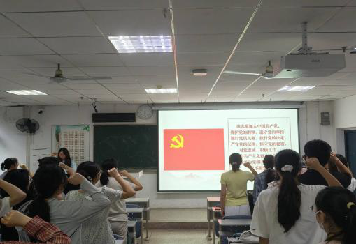 会上各学生党支部党员交纳五月党费,重温入党誓词,并集体诵读党章。