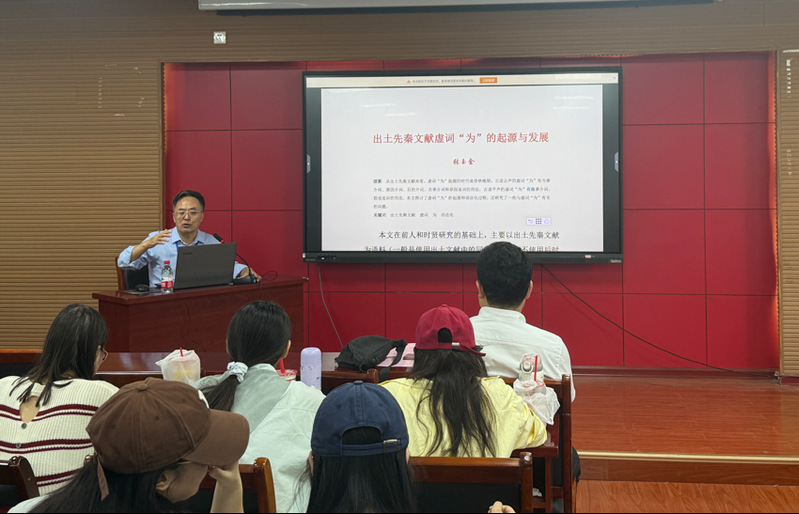 讲座伊始,张玉金教授系统介绍了出土先秦文献中虚词“为”的两种古音及其对应的语法功能,指出平声“为”多作施事介词与假设连词,去声“为”则具有当事、原因、目的、关事介词及原因连词等多种用法。随后,他通过丰富的出土与传世文献例证,详细阐释了各类介词与连词“为”的语法化路径。最后,张玉金教授还针对“何以……为”等特殊句式中的“为”进行了辨析,澄清了传统分析中的误解,进一步夯实了“为”字虚词体系的历时演变框架。