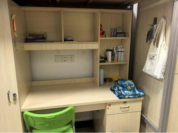内务整理过程中,每一处细节都彰显着自律的品格。如果说训练场是对体魄与意志的锤炼,那宿舍内务便是对心性与习惯的打磨。从衣柜里迷彩服与常服的分类叠放、棱角分明,到书桌上水杯、课本的有序排列、一目了然。这份在方寸之间养成的秩序感,不仅让宿舍环境愈发整洁温馨,更在潜移默化中培养了大家的自律意识。