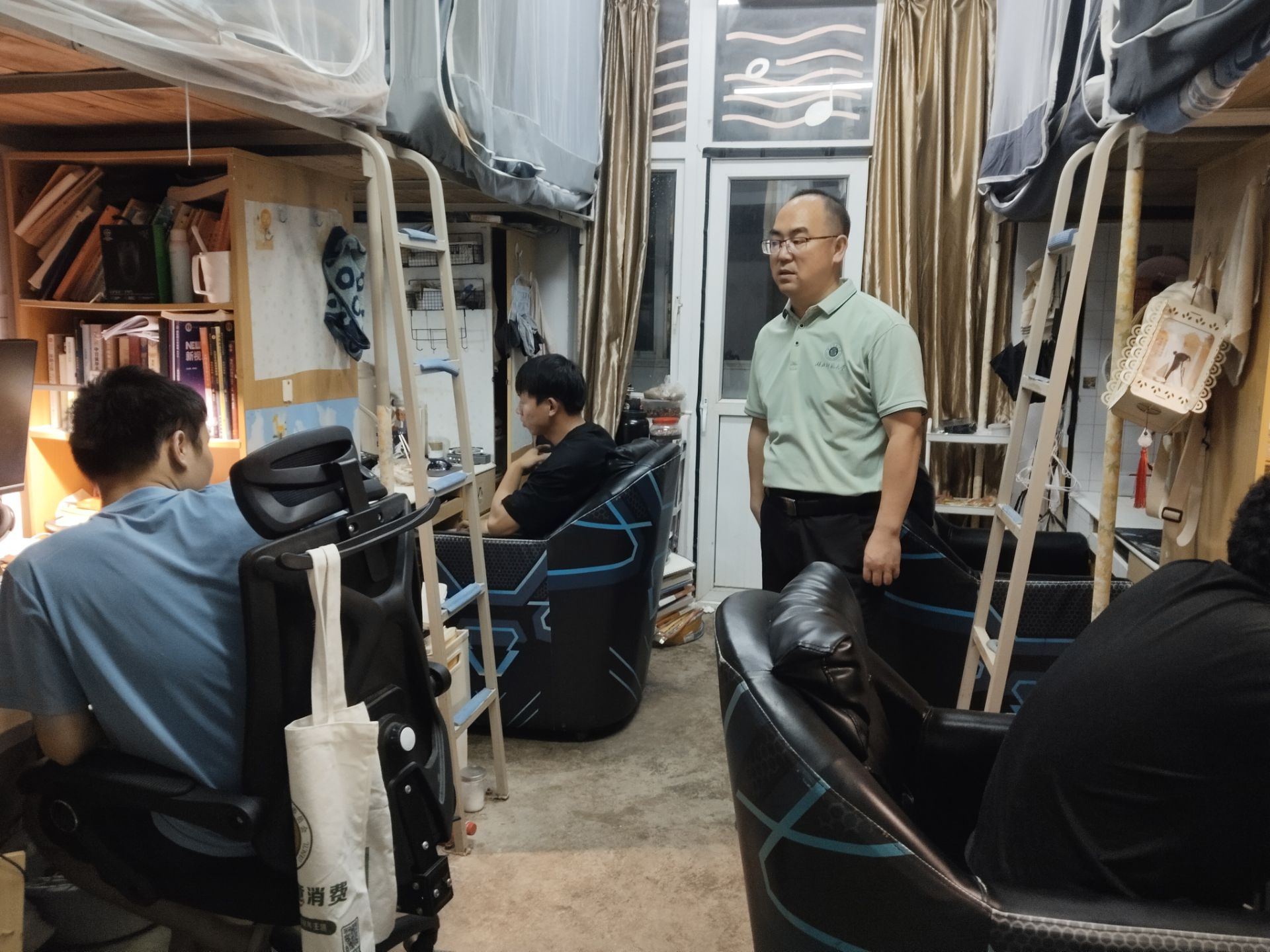 为深入了解学生的学习和生活情况,帮助学生尽快适应国庆假期返校后的学习和生活,2025年10月8日晚,yl8cc永利线路检测中心深入“文心”一站式学生社区,开展国庆收假宿舍走访工作,学院党委书记车录彬、党委副书记郭笑笑、副院长彭江浩,全体班主任、辅导员参与本次活动。