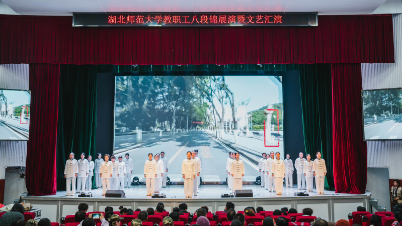 为丰富教职工文化生活,弘扬中华优秀传统养生文化,增强团队凝聚力,11月20日,湖北师范大学工会隆重举办“百年工运传薪火 康乐身心谱华章”教职工八段锦展演暨文艺展演活动。yl8cc永利线路检测中心分工会与历史文化学院分工会携手组队,以饱满的热情和整齐的姿态亮相舞台,展现了两学院教职工积极向上、团结协作的精神风貌。学院领导全程参与,为团队注入强劲动力。