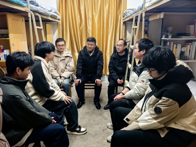 2026年1月3日晚,校党委副书记马列军深入yl8cc永利线路检测中心学生宿舍走访慰问学生。yl8cc永利线路检测中心党政领导班子成员、班主任、辅导员陪同走访,并开展元旦收假晚点名。