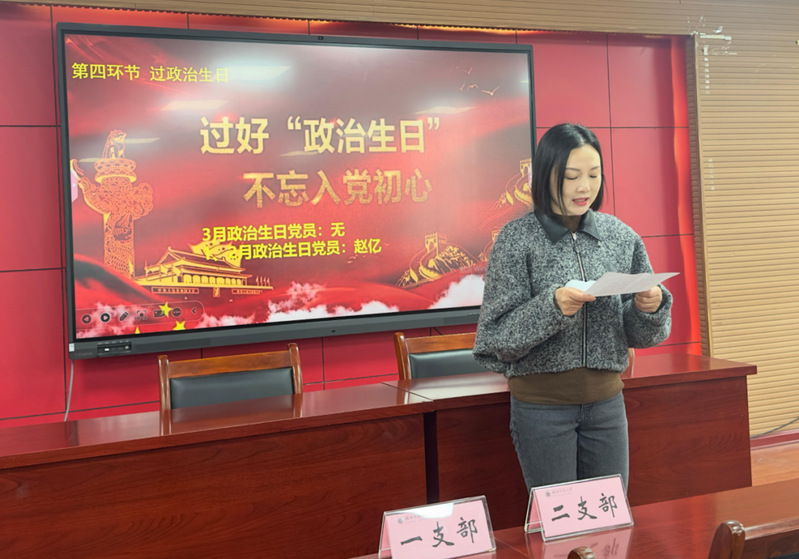 在庄重的仪式环节,全体党员集体重温入党誓词,现场缴纳党费,诵读党章第一章“党员”第九条内容。在“过政治生日”环节,赵亿同志回顾了自己的入党初心与成长历程,分享了履职尽责、担当作为的体会。