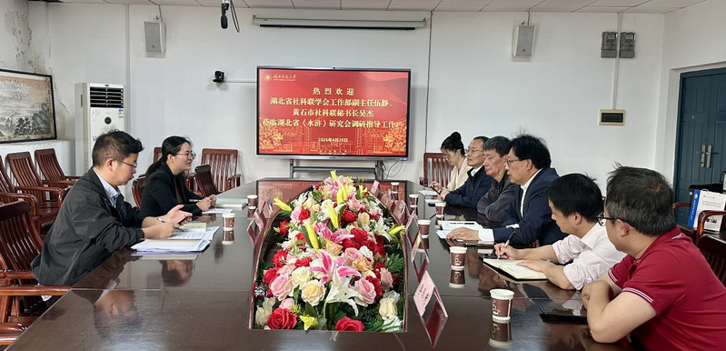 2026年4月20日,湖北省社会科学界联合会工作部副主任伍静、黄石市社会科学界联合会秘书长吴杰一行,莅临湖北省《水浒》研究会开展调研指导工作。yl8cc永利线路检测中心党委副书记郭笑笑,湖北省《水浒》学会会长、湖北师范大学教授景遐东等热情接待并陪同调研。